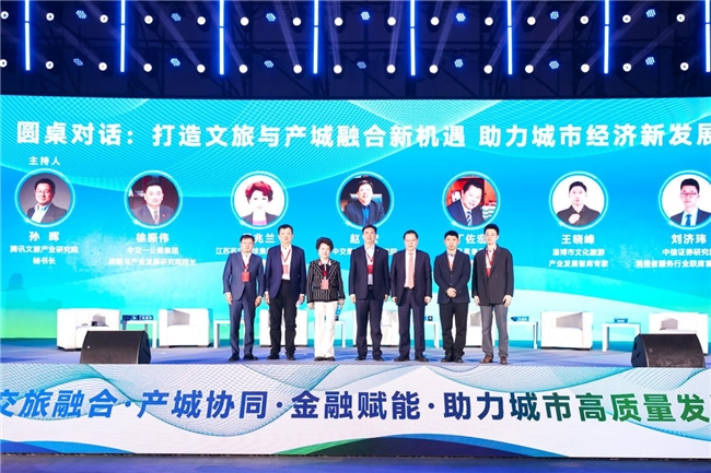 大會以“打造文旅與產(chǎn)城融合新機遇,助力城市經(jīng)濟新發(fā)展”為主題展開圓桌對話,對話由騰訊文旅產(chǎn)業(yè)研究院秘書長孫暉主持,月星集團董事局主席丁佐宏、江蘇蘇寧環(huán)球集團有限公司總裁吳兆蘭、中交集團戰(zhàn)略研究院院長趙宏、中交一公局集團戰(zhàn)略與產(chǎn)業(yè)發(fā)展研究院院長徐振偉、淄博市文化旅游產(chǎn)業(yè)發(fā)展專家智庫成員王曉峰、中信證券研究部消費者服務(wù)行業(yè)聯(lián)席首席分析師劉濟瑋分享了各自在企業(yè)發(fā)展和產(chǎn)業(yè)實踐中的經(jīng)驗,探討了文旅融合、產(chǎn)城融合,創(chuàng)新城市經(jīng)濟新機制,促進城鄉(xiāng)融合新發(fā)展等前沿話題。