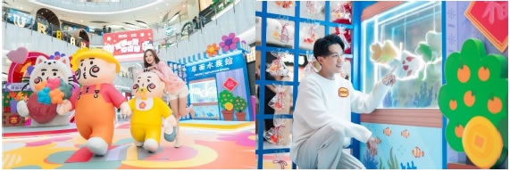 “貨架”上掛滿一包包金魚小袋,讓人瞬間仿若置身于金魚街。厚面水族館萌趣十足的金魚在水中自在游動(dòng),傳遞著新春金玉滿堂的祝福。悠閑逛完金魚街的厚面父子,大手拉小手開心來到MOKO 準(zhǔn)備買買買。