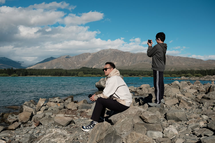 此次旅程也是黃覺與兒子核桃的首次單獨(dú)旅行。在新西蘭,黃覺父子倆共同體驗(yàn)了這片土地的多面魅力。他們身處蒂卡普湖畔的星空下,仰望南半球璀璨的銀河,感受宇宙的浩瀚;乘坐基督城的復(fù)古電車,穿梭于這座充滿歷史感的城市,一邊欣賞街景,一邊聆聽向?qū)еv述基督城的故事,體驗(yàn)這座城市的復(fù)蘇與活力;搭乘高山觀景火車,從基督城出發(fā),穿越南阿爾卑斯山脈,沿途經(jīng)過雪山、峽谷和森林,靜靜欣賞車窗外的絕美景色,享受這段寧?kù)o的旅程;在電影《指環(huán)王》的取景地霍比屯,他們俯身邁入霍比特人的小屋,仿佛置身于電影中的魔幻世界。