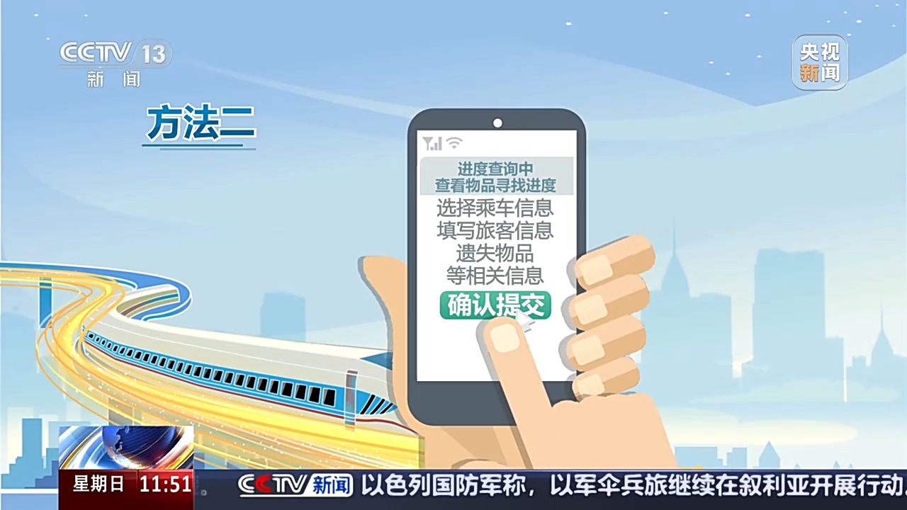 方法三:撥打全國(guó)鐵路客戶服務(wù)電話12306,準(zhǔn)確提供車次、地點(diǎn)、物品描述、聯(lián)系人等信息,鐵路部門將全力幫您查找。
