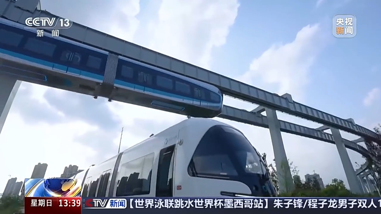 光谷空軌全長10.5公里,共設(shè)6個站,貫穿了光谷生態(tài)大走廊,既途經(jīng)高樓林立的商務(wù)區(qū),又飛越濕地公園和花海,實現(xiàn)科技與自然的奇妙交融。