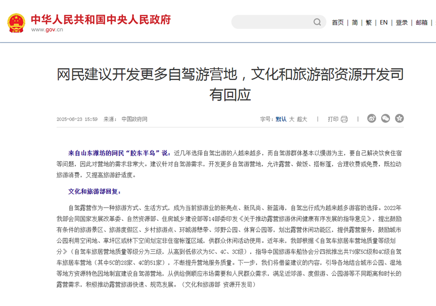 來自山東濰坊的網(wǎng)民“膠東半島”說:近幾年選擇自駕出游的人越來越多,而自駕游群體基本以慢游為主,要自己解決飲食住宿等問題,因此對(duì)營(yíng)地的需求非常大。建議針對(duì)自駕游需求,開發(fā)更多自駕游營(yíng)地,允許露營(yíng)、做飯、搭帳篷,合理收費(fèi)或免費(fèi),既拉動(dòng)旅游消費(fèi),又提高旅游舒適度。