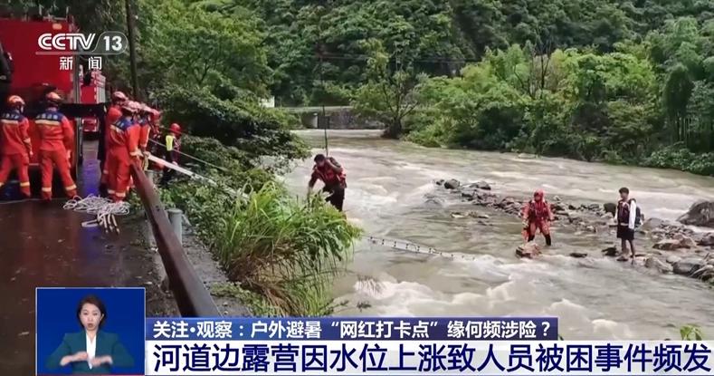 浙江寧波市消防救援支隊余盈:游客在水邊玩耍,對上游山洪的下降往往是聽不清、看不見的。提醒大家汛期不要在河道邊或者是干涸的河床上搭建營地,應(yīng)該盡量選擇地勢高、地面平坦堅固、背風的地方扎營。
