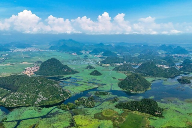 7月16日拍攝的普者黑景區(qū)風光(無人機照片)。新華社記者 彭奕凱 攝