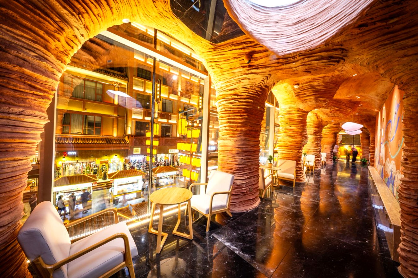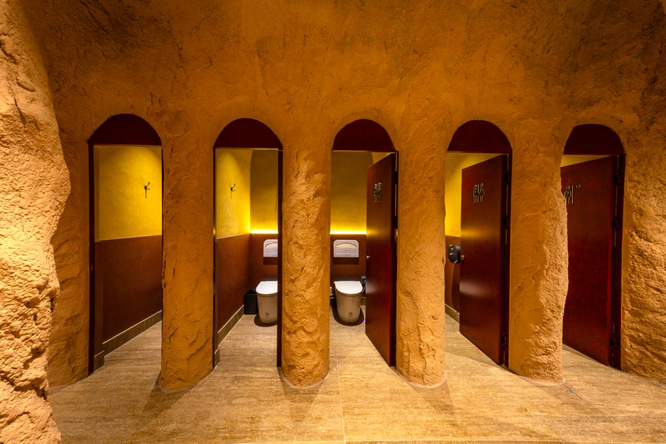 據(jù)了解,該項目對敦煌夜市“八景樓”進行功能再造,融合敦煌文化基因:一層以“莫高至善”為主題,二層則呈現(xiàn)“雅丹秘境”,營造雄渾奇幻的空間意境。步入其中,便能感受到敦煌文化與九牧衛(wèi)浴產品的完美交融,一位來自北京的游客表示:“這和我印象中的公廁完全不一樣,升級后的超白玻幕墻與毗鄰的沙州樓形成震撼的 ‘古今對話’,夜幕降臨時,燈光與幕墻交相輝映,宛如一座小型藝術館。”