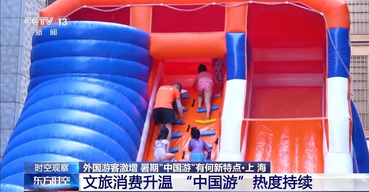 “清涼經(jīng)濟(jì)”也是這個(gè)夏天的熱門打開方式。7月以來,上海外灘搬來了一座暑期限定的水上樂園,帶領(lǐng)市民游客開啟玩水模式。打水仗、蕩秋千、爬索道,每個(gè)角落都藏著意想不到的清涼驚喜。
