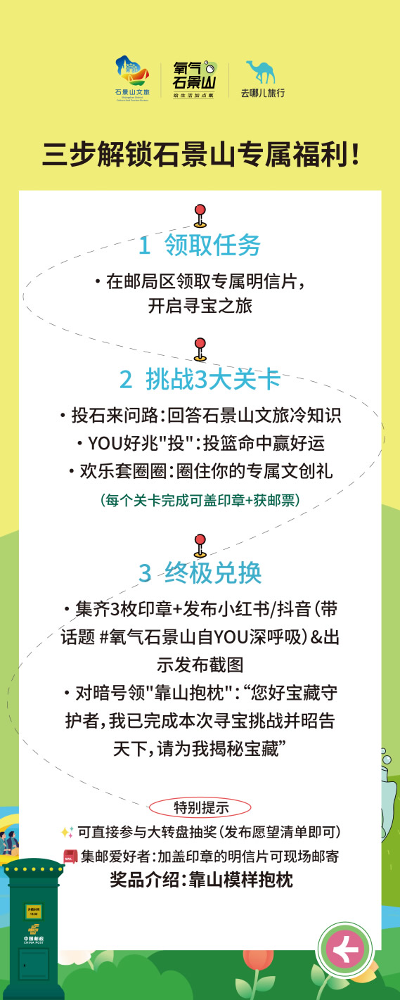在“去哪兒”旅行APP上線“氧氣石景山”文旅專題頁,不僅整合酒店榜單、景區(qū)門票、優(yōu)質(zhì)攻略等核心文旅資源,更特別設(shè)置石景山區(qū)對(duì)口支援和協(xié)作地文旅產(chǎn)品版塊,實(shí)現(xiàn)“石景山推廣+支援地區(qū)助銷”雙重價(jià)值。同步推出的“旅行打卡愿望清單”H5,線上用戶可點(diǎn)亮自己的石景山旅游心愿,生成專屬旅行愿望清單;在高校路演活動(dòng)中,大學(xué)生可分享H5到社交媒體作為參與活動(dòng)的入場券——既為高;顒(dòng)預(yù)熱,更成為高校路演入場憑證,串聯(lián)起“線上互動(dòng)-線下參與”的閉環(huán)。
