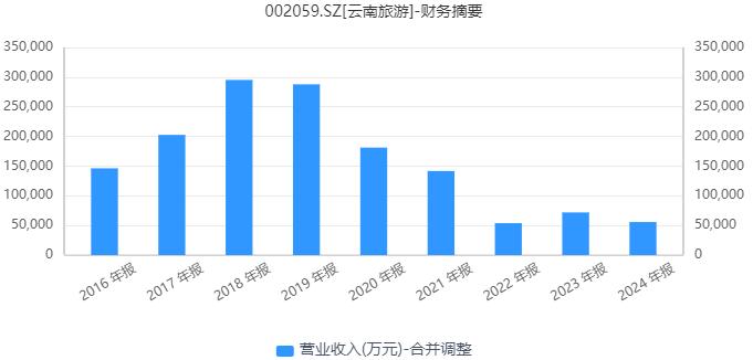 雖然擁有稀缺的旅游資源,但是在業(yè)績上,云南旅游卻沒有將優(yōu)勢轉化為利潤。營收方面,公司在2018年達到高點后就快速下滑,這幾年營收規(guī)?s水較嚴重,2024年公司的營收5.57億元,僅相當于2018年營收的18%左右。