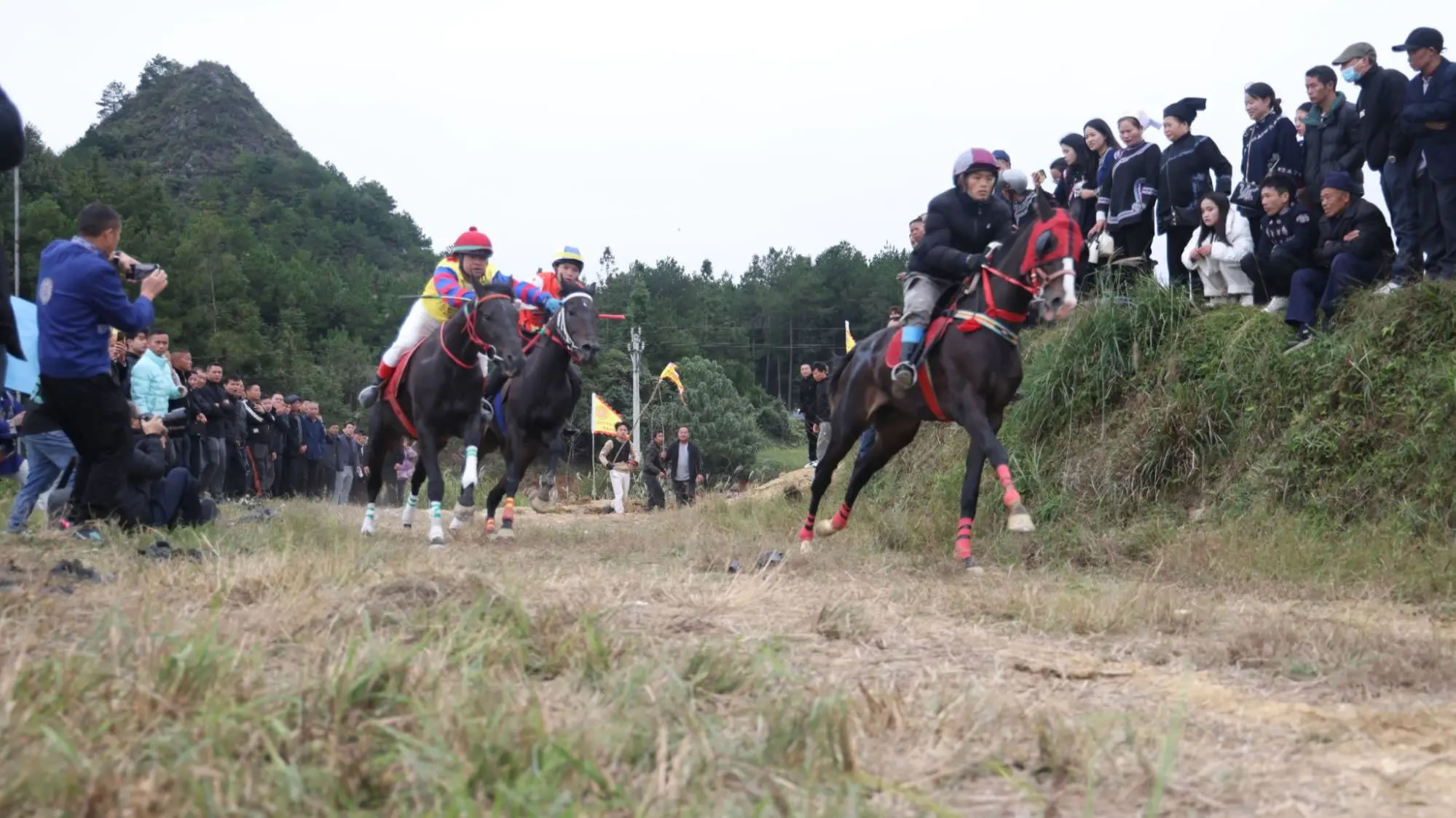 賽道上,裁判員一聲令下,騎手揚鞭策馬,如箭一樣奔向前方,騎手們你追我趕地馳騁在鄉(xiāng)土賽道,上演水族獨有的速度與激情。觀眾的助威吶喊聲不斷,現(xiàn)場高潮迭起、熱鬧非凡。