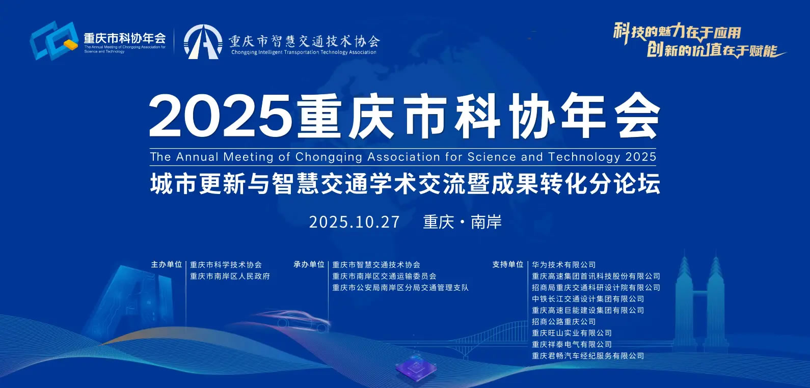 10月27日,2025重慶市科協(xié)年會即將開幕。作為年會重要組成部分,“城市更新與智慧交通學(xué)術(shù)交流暨成果轉(zhuǎn)化分論壇”將于當天下午舉行,旨在匯聚政、產(chǎn)、學(xué)、研各方力量,共同探討人工智能等前沿科技如何賦能重慶城市交通治理與更新。