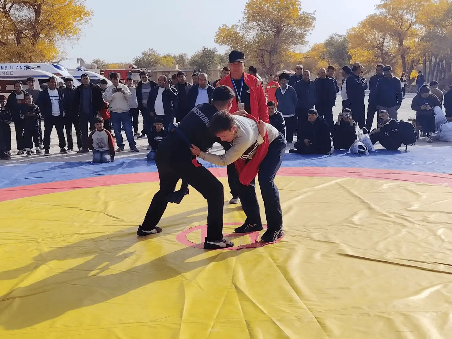 活動當(dāng)天,且力西比賽現(xiàn)場熱鬧非凡,眾多體育愛好者與游客紛紛圍攏,目光緊盯著賽場。隨著裁判一聲哨響,摔跤手們迅速進入狀態(tài),或蹲下身子穩(wěn)步試探,或主動出擊鎖住對方肩膀。抱腰、絆腿、過肩摔……一系列技巧動作如行云流水,剛勁有力又不失靈活。每當(dāng)有精彩對決上演,場邊便爆發(fā)出陣陣喝彩與加油聲,不少觀眾舉起手機,記錄下這難忘的瞬間。