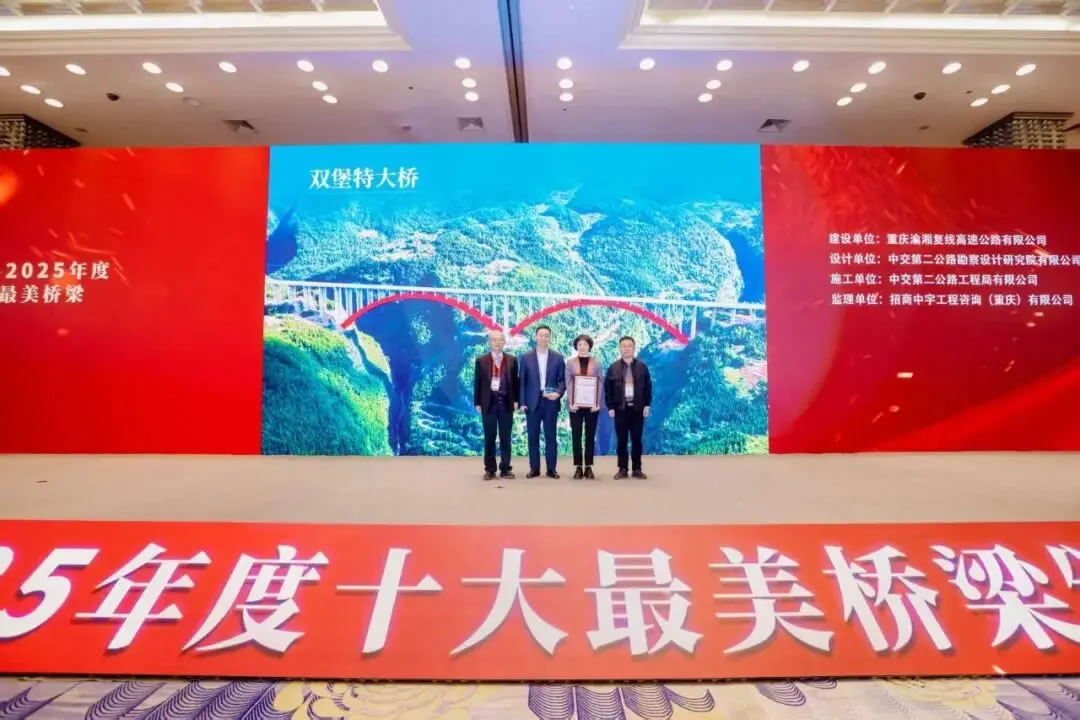 近日,由《橋梁》雜志社組織舉辦的“2020-2025年度十大最美橋梁”終評會議及頒獎晚會舉行,其中,渝湘復(fù)線高速公路雙堡特大橋獲評“2020-2025年度十大最美橋梁”。