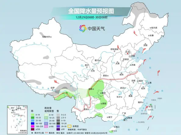 2025年12月30日至2026年1月1日,西藏東部、西北地區(qū)東部、黃淮西部、江漢西部等地部分地區(qū)將有一次明顯雨雪天氣過程,陜西、山西、河南等地部分地區(qū)雨雪混雜。雨雪天氣或影響元旦假期出行,公眾外出需關注預警預報信息,駕車出行留出安全剎車距離,謹防道路濕滑。