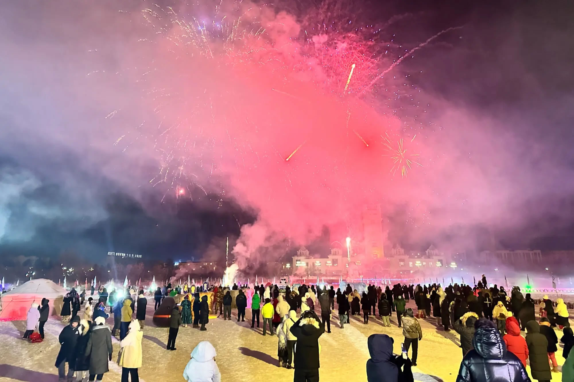 當(dāng)晚,無人機(jī)表演和煙花秀成為開園活動的一大亮點(diǎn)。無人機(jī)在夜空中變換造型,與冰雪景觀交相呼應(yīng),隨后綻放的煙花點(diǎn)亮夜空,將現(xiàn)場氛圍推向高潮,吸引游客駐足觀看、拍照留念。