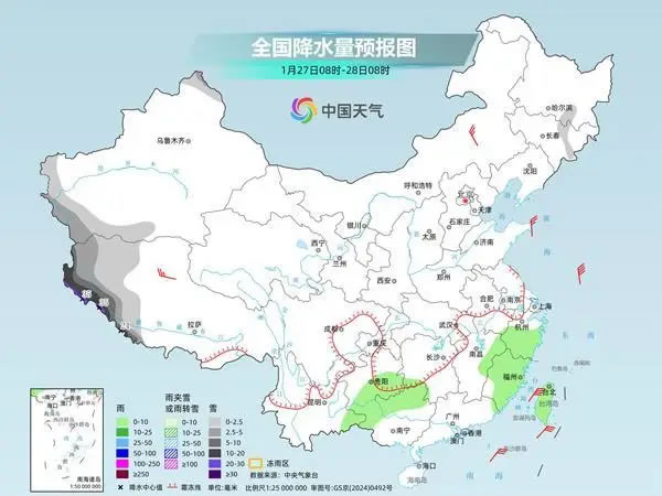 今明天(1月27日至28日),我國(guó)中東部地區(qū)降水日漸減少,西藏降雪將增多、增強(qiáng),局地或有特大暴雪,需注意防范。氣溫方面,未來幾天,我國(guó)大部氣溫多起伏,南方部分地區(qū)氣溫波動(dòng)明顯,公眾請(qǐng)適時(shí)調(diào)整著裝。