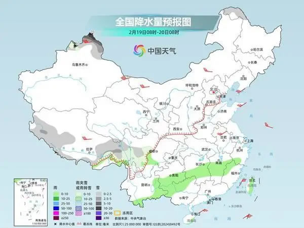 明天,黑龍江西北部、新疆北疆北部、西藏南部和東部、川西高原南部等地部分地區(qū)有小到中雪或雨夾雪,其中,新疆北疆阿勒泰和塔城西部高海拔地區(qū)、西藏西南部等地部分地區(qū)有大雪,局地暴雪(10~16毫米);江南南部、貴州南部、四川盆地西南部、廣西北部和西部、云南東部和南部、臺(tái)灣島等地部分地區(qū)有小雨。