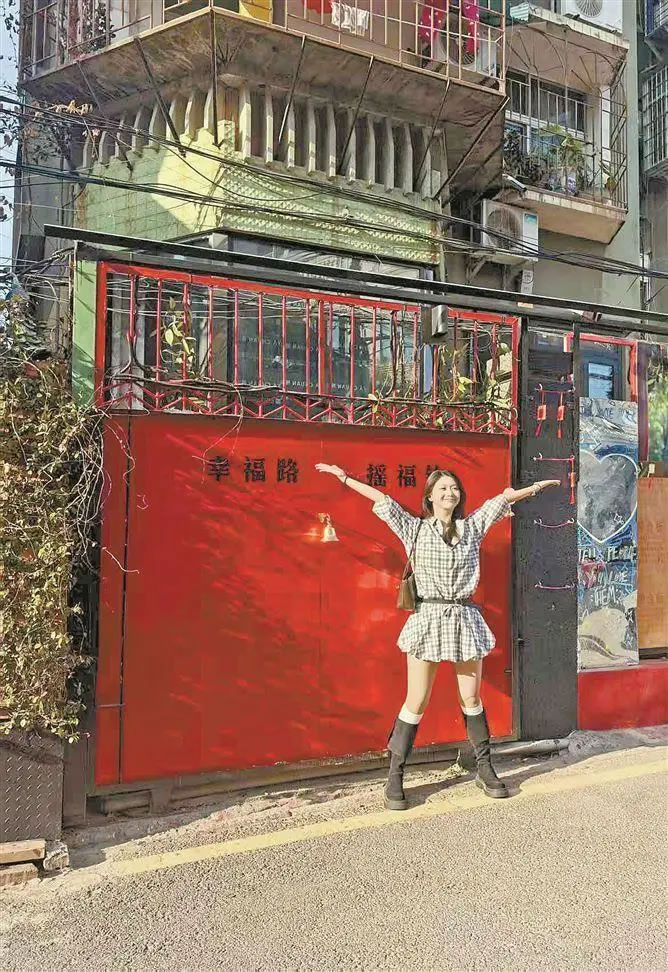 游客打卡幸福路并留下美照。(本報(bào)記者楊霞瑜 攝)