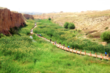 水洞溝遺址旅游區(qū)內(nèi)明代軍事立體防御體系區(qū)是由明長(zhǎng)城、藏兵洞、邊溝、大峽谷、紅山堡、甕城等共同構(gòu)成的。