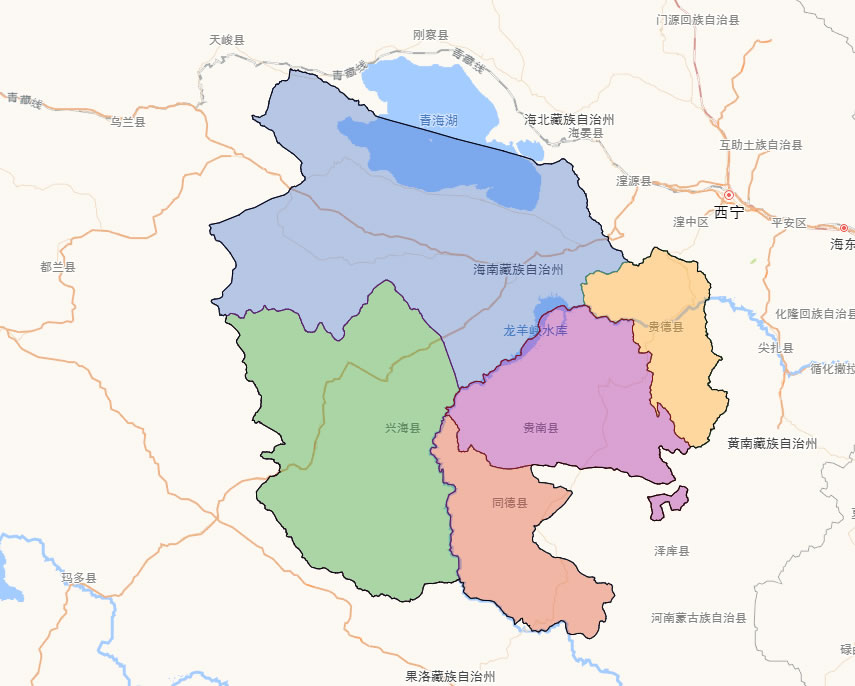 海南藏族自治州位于青海省東部,因地處我國最大的咸水湖“青海湖”之南而得名,素有“海藏通衢”之稱。海南是青藏高原的東門戶,東與海東市和黃南藏族自治州毗連,西與海西蒙古族藏族自治州接壤,南與果洛藏族自治州為鄰,北隔青海湖與海北藏族自治州相望;東西寬260千米,南北長270千米,面積為4.45萬平方千米,占青海省總面積的6.18%。