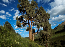 祁連圓柏為常綠喬木。是青藏高原氣候驟變時(shí)期產(chǎn)生的樹(shù)種,是名副其實(shí)的常青樹(shù)。其葉在幼樹(shù)上全為刺形,隨著樹(shù)齡的增長(zhǎng)刺形葉逐漸被鱗形葉代替,廣泛分布于海拔2600 -4300米的陽(yáng)坡、半陽(yáng)坡地帶,耐寒旱、耐貧瘠,對(duì)土壤要求不高,能生于酸性、中性及石灰質(zhì)土壤上,其枝葉會(huì)散發(fā)出獨(dú)特的清香,具有清神醒腦的功效。因其根系發(fā)達(dá),有良好的保水固土和涵養(yǎng)水源的作用,固為祁連地區(qū)主要的造林樹(shù)種和草原牧護(hù)林。以葉入藥,性苦,有止血、鎮(zhèn)咳功效。