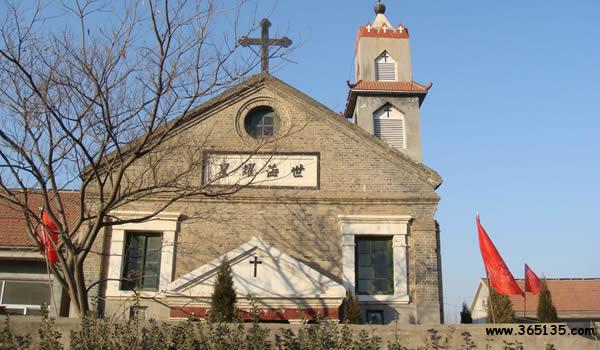 小劉天主教堂:建于1916年,分路南、路北兩個(gè)院落。路北院間隔為東西兩院,西院有禮堂一座,瓦房38間,為教士專用房。東院有房40間,后20間為職工和貞女宿舍,前20間為女子學(xué)校。路南院為修女院和經(jīng)言學(xué)校,有修女樓兩座,經(jīng)言堂17間。1935年,開設(shè)教會(huì)醫(yī)院門診,由3名美國(guó)籍修女為主治醫(yī)生,全部為西藥,一年后改換中國(guó)籍修女為主治醫(yī)生,1941年停診。