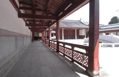 大成殿東西兩側(cè)的房子叫“兩廡”,是后世供奉先賢 先儒的地方這配享的賢儒大都是后世儒家學(xué)派中著名的人物,如董仲舒、韓愈、王陽明等。在唐朝僅有20余人,經(jīng)過歷代增添更換,到民國時(shí),多達(dá)156人。這些配享的人原為畫像,金代改為塑像,明成化年間一律改為寫有名字的木制牌位,供奉在一座座的神龕中。現(xiàn)在兩廡中陳列著歷代石刻。