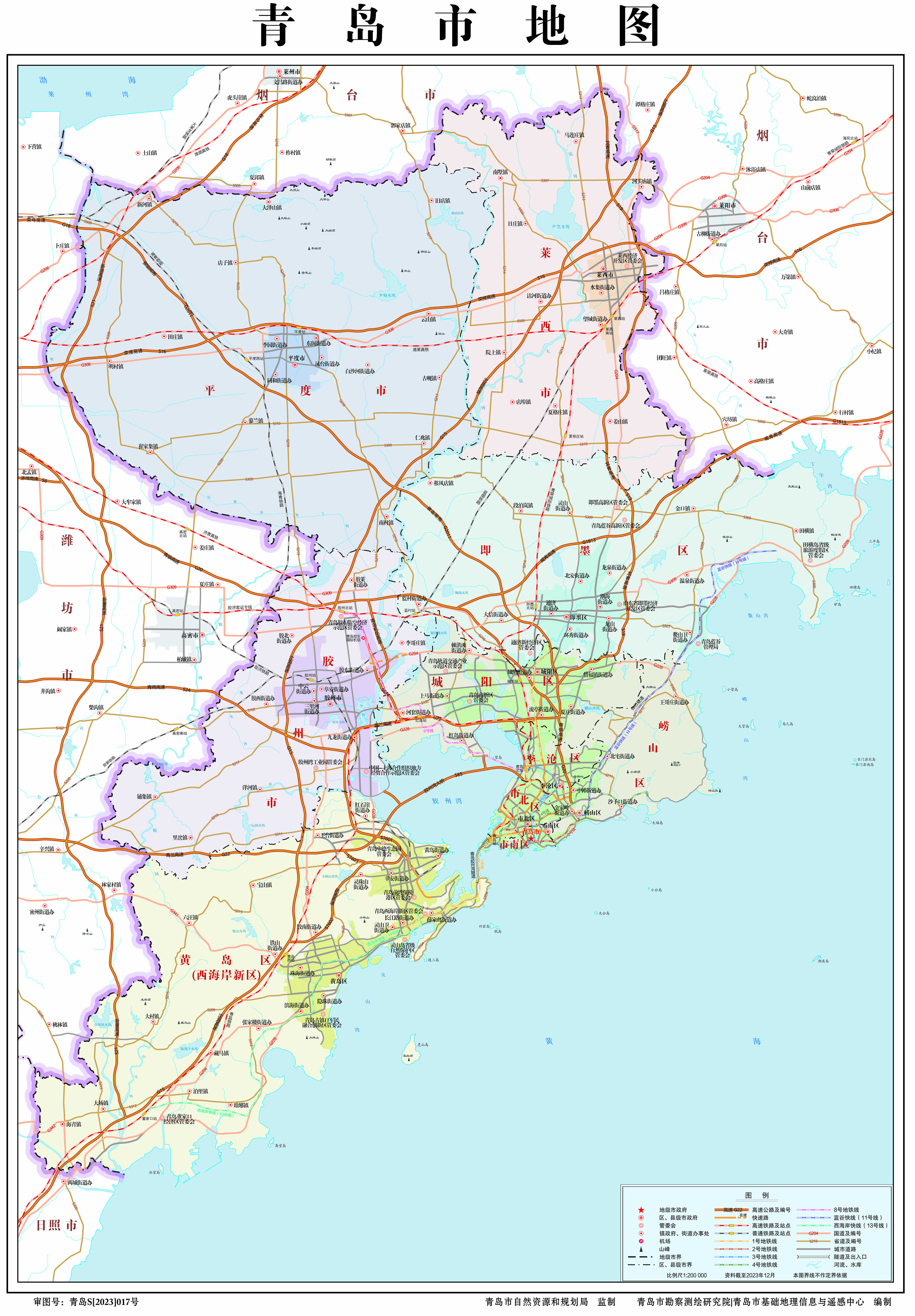 青島市轄7個市轄區(qū),代管3個縣級市: