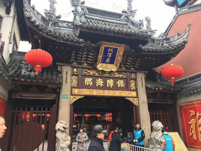 上海城隍廟,位于上海市黃浦區(qū)方浜中路249號(hào),坐北朝向南,內(nèi)部有大門、二門、戲樓、大殿、寢宮、東西廊廡,沿中軸線依次排列,總面積約三千余平方米。廟內(nèi)主體建筑有大殿、元辰殿、父母殿、關(guān)圣殿、文昌殿等9個(gè)殿堂,總面積約三千余平方米。大殿、中殿改為鋼筋混凝土結(jié)構(gòu)。大殿高16米,寬13.7米,進(jìn)深21米。歇山頂,彩椽畫棟,翠瓦朱檐,華麗輝煌。大殿前有照壁、牌坊、戲臺(tái)、碑亭。大殿祀霍光,中殿祀秦裕伯,兩側(cè)花廳奉城隍父母,后殿奉城隍夫人,樓上為寢宮。