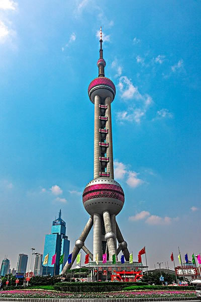 東方明珠廣播電視塔,簡稱“東方明珠”,位于上海市浦東新區(qū)陸家嘴世紀大道1號,地處黃浦江畔,背擁陸家嘴地區(qū)現(xiàn)代化建筑樓群,與隔江的外灘萬國建筑博覽群交相輝映,1991年7月30日動工建造,1994年10月1日建成投入使用,是集都市觀光、時尚餐飲、購物娛樂、歷史陳列、浦江游覽、會展演出、廣播電視發(fā)射等多功能于一體的上海市標(biāo)志性建筑之一。截至2019年,為亞洲第六高塔、世界第九高塔。