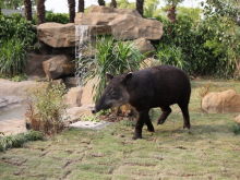 中美貘是生活在中美洲的一種草食動(dòng)物,它的長(zhǎng)相怪異,形體似豬。中美貘棲居于茂密的熱帶雨林中,它們善于游泳和攀登,喜歡在靠近水源、植被豐富的地方生活。中美貘館展區(qū)中配置了假山、瀑布、喬木、灌木、草地等,這種生態(tài)化的展示更加符合中美貘的生活習(xí)性。