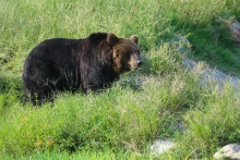 熊區(qū)是車入?yún)^(qū)的一部分。熊區(qū)模擬自然生態(tài)環(huán)境建設(shè),設(shè)置巖石山體、池塘溝渠;種植了喬木和灌木,給棕熊和黑熊更多的自由活動(dòng)的空間。