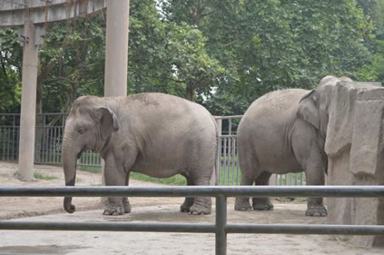 上海動(dòng)物園飼養(yǎng)有國(guó)內(nèi)動(dòng)物園少有的三代同堂的亞洲象家族。象展區(qū)包括象宮和象室外活動(dòng)場(chǎng)兩部分。象宮建成于1955年,是上海動(dòng)物園第一幢永久性的動(dòng)物館舍,總建筑面積1550平方米,主要包括500平方米室內(nèi)活動(dòng)場(chǎng)、620平方米參觀廳和100余平方米的4個(gè)門(mén)廳。室內(nèi)活動(dòng)場(chǎng)的東、西、南三面都是寬9米的參觀廳,參觀廳進(jìn)出口的門(mén)廳東、西各有一個(gè),南面分左右二個(gè),南面二門(mén)廳間外有紫藤棚架相連。整個(gè)建筑的門(mén)窗都用杉木拼雕成具有民族風(fēng)格的圖形裝飾。