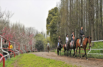 位于公園北部,叢林原野之西,占地約6.75萬平方米。在密林中設寬4米,長300米的環(huán)形跑道,磚、石碴路基,泥夾沙路面。兩邊設有鋼筋混凝土柱和鐵索的護欄。開始僅有上海電影制片廠寄養(yǎng)的6匹馬,1988年后陸續(xù)從陜西、新疆購進馬匹,形成有40匹馬,設施比較完備的騎馬娛樂場。