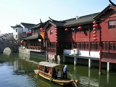 七寶老街改造歷時(shí)兩年多,現(xiàn)已完成一、二期建設(shè)任務(wù)。第一期,修繕蒲匯塘橋和南北一條街,辟建鐘樓和塘橋兩處休閑廣場(chǎng)。第二期,新建蒲匯塘水閣和修復(fù)相應(yīng)的上塘房,重建東西兩座石橋、蒲匯碼頭和七寶校場(chǎng),恢復(fù)典當(dāng)街,建造張充仁紀(jì)念館等。主事者重視古鎮(zhèn)修復(fù)改造中的文化表現(xiàn),在世人面前展現(xiàn)的是一條保留明清建筑特色的商業(yè)文化街,同時(shí)兼有地方文化內(nèi)涵的歷史老街。作為閔行區(qū)唯一還保存著古樸建筑風(fēng)貌的七寶古鎮(zhèn),現(xiàn)在成了游人們?cè)L舊懷古之勝地。不然,享有盛名的七寶老酒去哪里聞?在以餐飲小吃為主的南大街上,返璞歸真的酒坊還在,七寶老酒的生產(chǎn)全過程一一展示于人。傳統(tǒng)的七寶羊肉,白切、紅燒、熱煲,各種口味應(yīng)有盡有,連外來的“喬家柵”也看中此間古意而入駐老街。