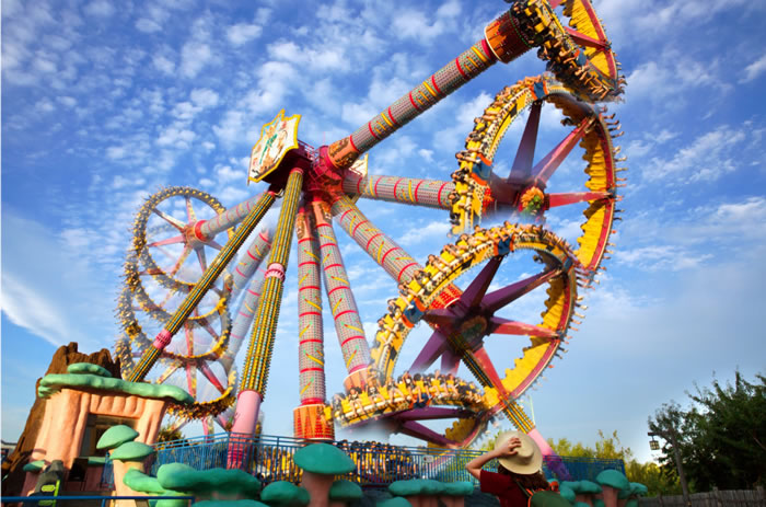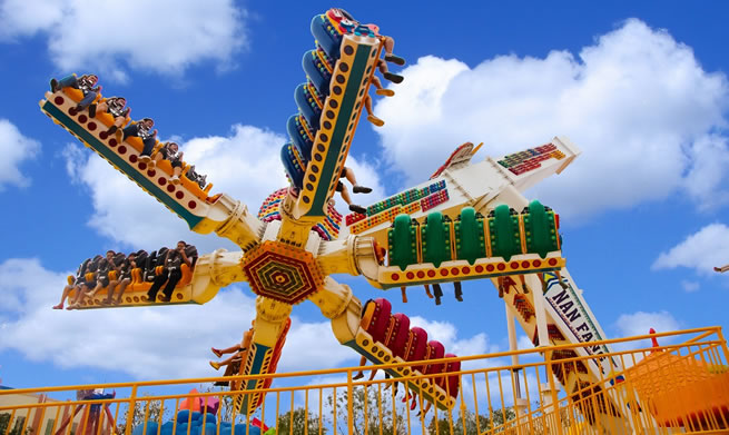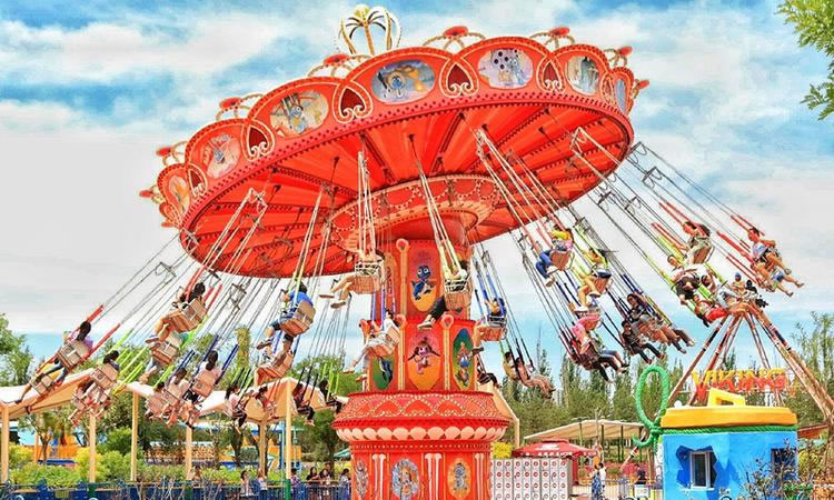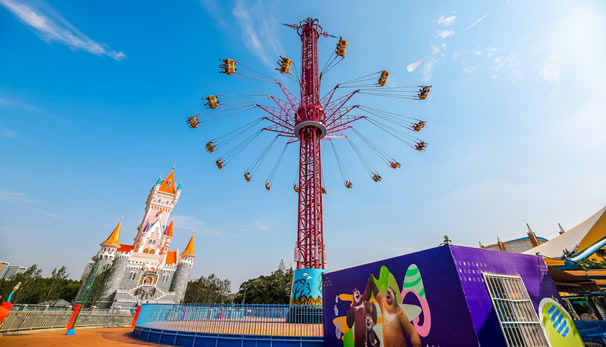 在優(yōu)美、輕快的旋律中,碩大的轉(zhuǎn)盤(pán)和轉(zhuǎn)臺(tái)錯(cuò)向旋轉(zhuǎn)、搖擺,隨著轉(zhuǎn)盤(pán)的搖擺,塔身徐徐上升。此時(shí),穩(wěn)坐飛椅的游客在離心力的作用下,上下飛旋,時(shí)而像在藍(lán)天翱翔,時(shí)而像在海上沖浪,能感受到騰云駕霧的快感。想體驗(yàn)兒時(shí)蕩秋千的感覺(jué)嗎,想體驗(yàn)在空中展翅飛翔的暢快嗎,那就來(lái)到高空飛翔盡情的放聲尖叫吧……