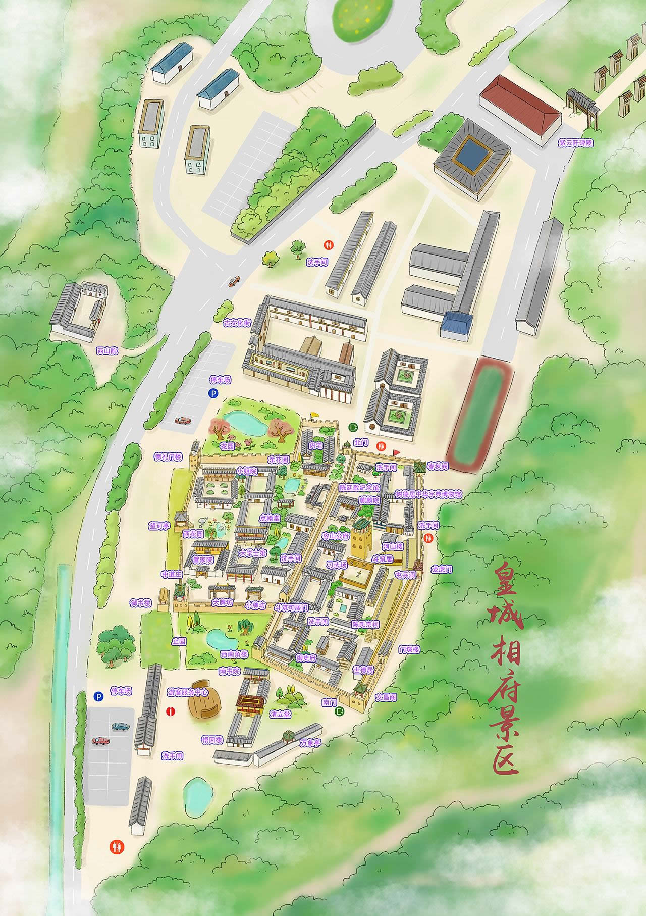 皇城相府建筑群分內(nèi)城、外城兩部分,有院落16座,房屋640間,總面積36580平方米。內(nèi)午亭山莊導(dǎo)航圖城始建于明崇禎五年(公元1632年),有大型院落八座。外城完工于康熙四十二年(公元1703年),有前堂后寢、左右內(nèi)府、書(shū)院、花園、閨樓、管家院、望河亭等。