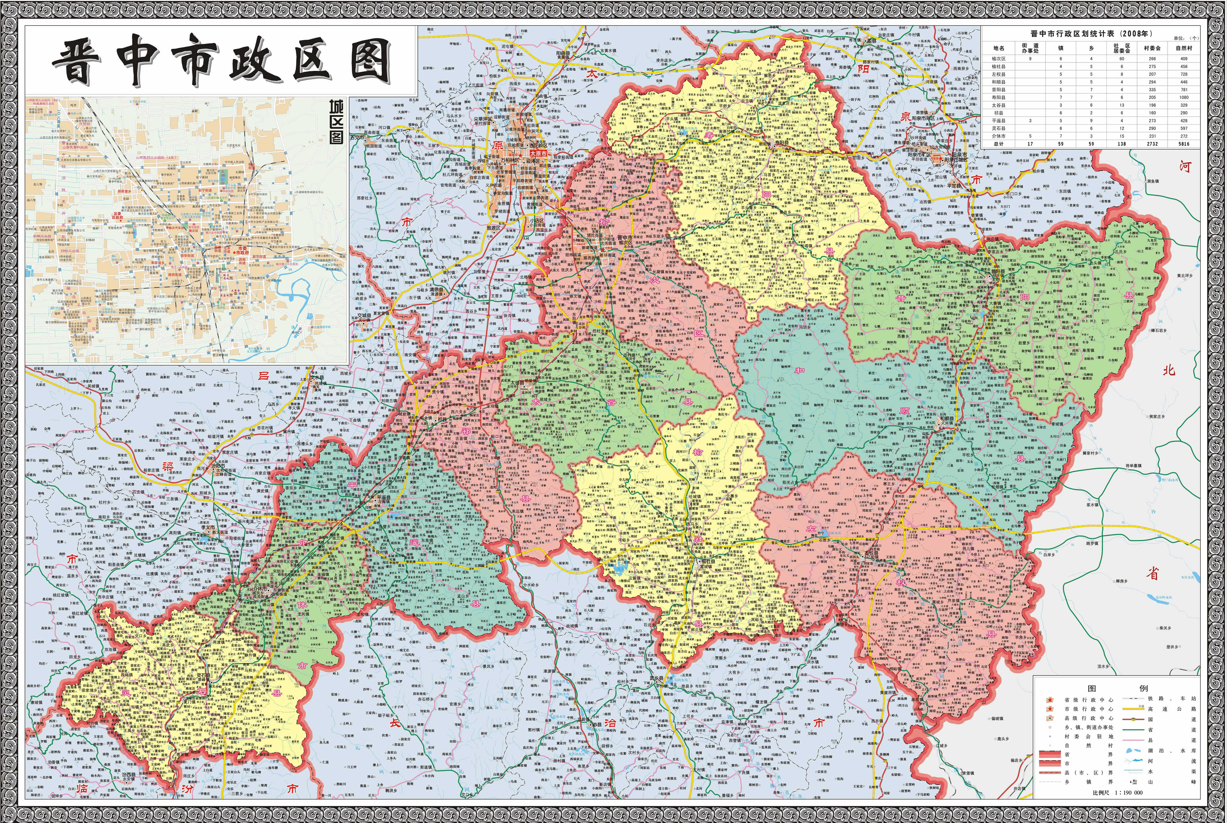 晉中市轄2個(gè)市轄區(qū)、8個(gè)縣,代管1個(gè)縣級市: