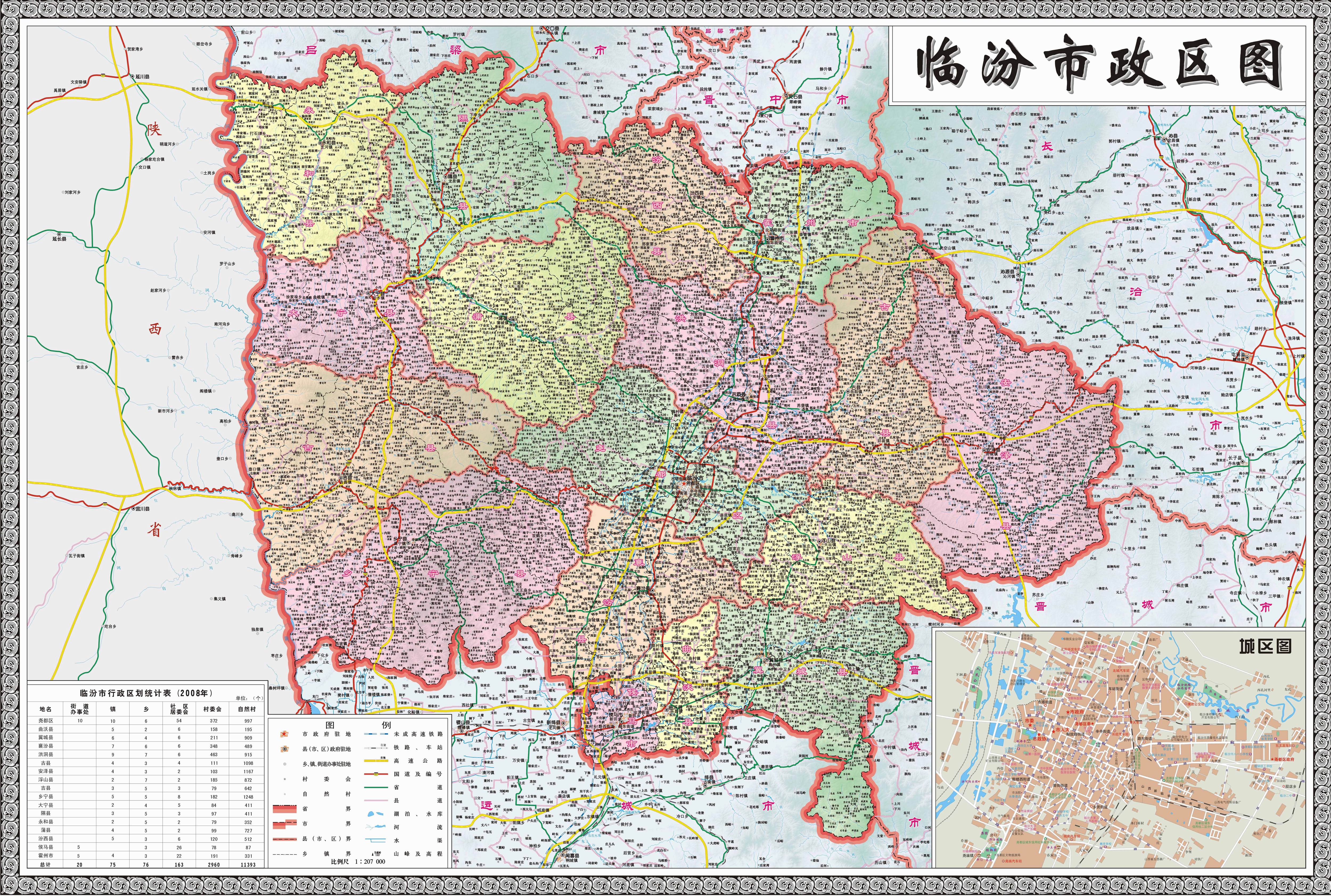臨汾市轄1個市轄區(qū)、14個縣,代管2個縣級市: