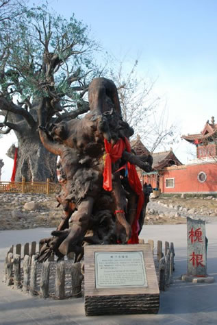 據(jù)考古人員鑒定,此根大約生長(zhǎng)在宋元時(shí)期,距今約1000年左右,遠(yuǎn)在明初移民之前。槐根高度6.2米,其中外露部分4.2米。槐根盤(pán)枝錯(cuò)節(jié),形象奇特,能讓人產(chǎn)生豐富的聯(lián)想,是一棵罕見(jiàn)的大型古槐真根。