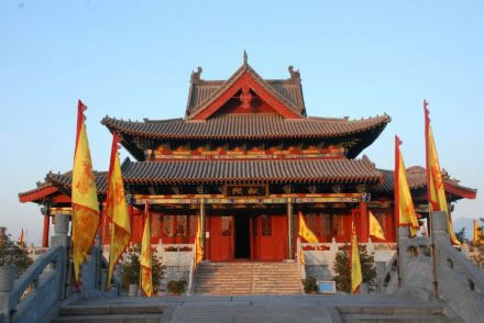 獻(xiàn)殿是祭祀時(shí)用來(lái)擺放供品的地方,也是主祭人員的主要活動(dòng)場(chǎng)所,位于祭祖活動(dòng)區(qū)中軸線位置上,建筑面積1250平方米,面闊五間,進(jìn)深五間,單層重檐,廊圍四邊,是仿明代全木結(jié)構(gòu)建筑,十字歇山屋頂與仿明戲臺(tái)連為一體,其高度,跨度乃三晉之首,其華麗壯觀為全國(guó)罕見(jiàn)。