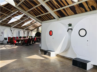 蝸牛公寓位于云岡石窟景區(qū)東山,是東山菩提藝術(shù)區(qū)的一部分,由云岡石窟研究院主導(dǎo)創(chuàng)意,用廢舊水泥管、廢舊鋼鐵等廢舊材料打造出來(lái)的綠色環(huán)保寫生建筑。走進(jìn)“蝸牛公寓”,內(nèi)含會(huì)客廳、28間臥室,洗漱臺(tái)、衛(wèi)生間,其中地下公共部分還配有電影放映室、臺(tái)球室、酒吧、咖啡廳等公共休閑娛樂(lè)設(shè)施,長(zhǎng)廊的墻壁,藝術(shù)家或藝術(shù)院校學(xué)生可以隨意涂鴉。這個(gè)特別隨意且有藝術(shù)范兒的空間,為到云岡石窟景區(qū)寫生創(chuàng)作、旅游休閑的人們提供了優(yōu)質(zhì)舒適的住宿、創(chuàng)作、娛樂(lè)空間。