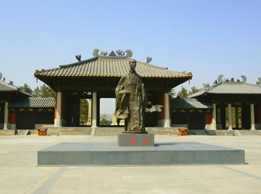 曇曜廣場(chǎng)位于云岡石窟景區(qū)入口處,占地6000多平方米,是為紀(jì)念云岡石窟的開(kāi)創(chuàng)者曇曜高僧而建。整個(gè)廣場(chǎng)及亭廊建筑渲染著濃重的北魏皇家氣象,廣場(chǎng)中央的曇曜雕塑以瀟灑大器的寫意手法,塑造了一代佛門大德的藝術(shù)形象,高古清逸,似篳路藍(lán)縷,風(fēng)塵仆仆,卻是袈裟飄逸,似乎從千年前的塵埃中走來(lái)。公元460年,北魏文成帝復(fù)興佛法,命曇曜高僧主持開(kāi)鑿了規(guī)模宏大的云岡石窟,因此,曇曜不僅是開(kāi)鑿云岡石窟的創(chuàng)始人,也是北魏著名的佛學(xué)大師和譯經(jīng)大家,是北魏佛教昌盛的奠基人。