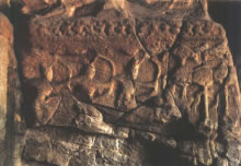 穿過(guò)神柱林立的佛光大道向西,呈現(xiàn)于世人眼前的是兩面相對(duì)的扇形皇家禮佛浮雕墻。這組正面相對(duì)的浮雕墻總體呈圓弧狀,長(zhǎng)約20米、高約4米,畫面構(gòu)圖完美,雕刻細(xì)致,以高浮雕的形式,生動(dòng)表現(xiàn)了北魏皇家盛大的帝后禮佛圖。車轔轔、馬蕭蕭的現(xiàn)場(chǎng)氣氛,充分再現(xiàn)了北魏當(dāng)時(shí)皇帝、皇后前往禮佛的莊嚴(yán)肅穆的宏大場(chǎng)面,這種場(chǎng)面讓人自然聯(lián)想到1500多年前云岡石窟作為皇家寺院曾經(jīng)的輝煌,讓人舉目流連。