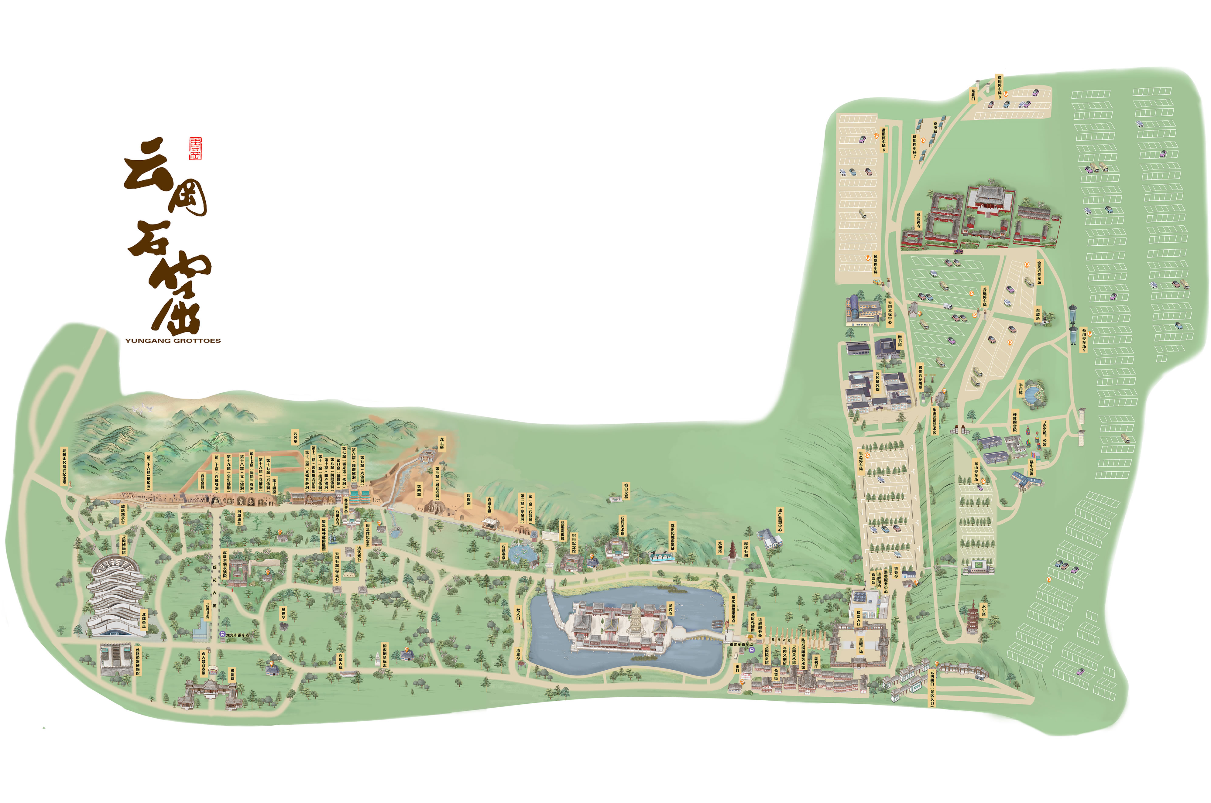 近代:1949年中華人民共和國(guó)成立,云岡石窟的主要洞窟和窟前木結(jié)構(gòu)建筑(第5、6、7窟)均保存完好。1952年設(shè)置專門保護(hù)機(jī)構(gòu),石窟文物得以妥善保護(hù),并對(duì)公眾開(kāi)放。