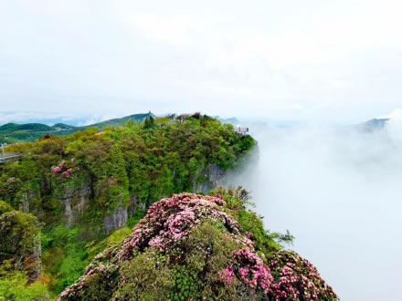 龍頭山景區(qū),位于陜川交界處米倉山主梁,陜西省漢中市南鄭區(qū)小南海鎮(zhèn)境內(nèi),其峰如刀削,崖似斧劈,奇?zhèn)ザ鴯槑V。每當(dāng)云繞霧鎖時,峰顛忽隱忽現(xiàn),如巨龍翻騰,故名龍頭山。
