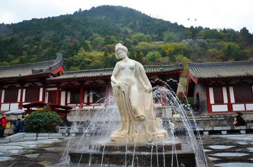 〔玉女殿、虛閣〕虛閣今名夕佳樓,下即溫泉源,名星辰湯!堕L安志》:“虛閣下溫泉,二玉石甕,溫泉所出也”。