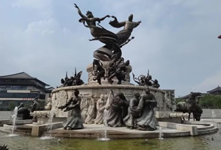 〔舞馬臺〕舞馬之所,舞馬是唐玄宗獨(dú)出心裁的大發(fā)明!睹骰孰s錄》稱:“玄宗常教舞馬四百蹄,各為左右,分為部目,為某家寵,某家驕。時塞外亦有善馬來貢者,上俾之教司,無不曲盡其妙。因命衣以文繡,絡(luò)以金銀,飾其鬃鬣,間雜珠玉。奏其曲謂‘傾杯樂’者數(shù)十回。其馬奮首鼓尾,縱橫應(yīng)節(jié)。又施三重板床,乘馬其上,旋轉(zhuǎn)如飛,……每千秋節(jié)(玄宗生日)命舞于勤政樓下!薄督蜿栭T》詩注:“其舞馬,安祿山亦將數(shù)匹以歸而私習(xí)之。其后,田承嗣代安有存者,一旦于廄上聞鼓聲,頓挫起舞,廄人惡之,舉篲以擊之,其馬尚為怒未妍妙,因更奮擊,宛轉(zhuǎn)曲盡其態(tài)。廝恐以告,承嗣以為妖,遂戮之,而舞馬自此絕焉。”杜甫《斗雞殿》詩“斗雞初賜錦,舞馬既登床”即言此。