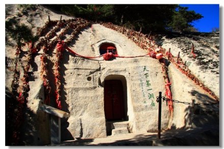 “洞房花燭夜”中“洞房”一詞就源于華山西峰。過去,由于華山路險難于攀登,一般人望而卻步,這就為早期一些要隱蔽修行的人提供了絕好的去處。而在山上難以找到筑觀蓋廟的材料,隱士們就鑿石洞而居,修行悟道。