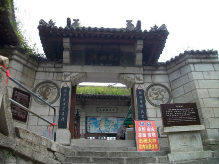 “通天亭”,因和山頂金鎖關(guān)通天門遙遙相對,所以叫“通天亭”,從這兒出玉泉院,“自古華山一條路”就從大家腳下開始沿伸,全長25華里,共有9567個臺階,沿途各位可以看到迷人的風(fēng)光山色,誘人的驚險神道。