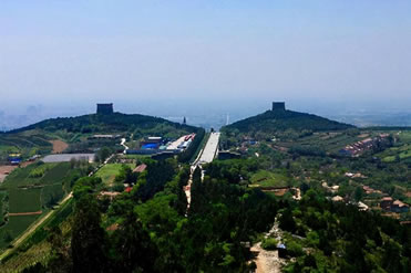 乾陵是陜西關(guān)中地區(qū)唐十八陵之一,位于陜西省咸陽(yáng)市乾縣北部,距離縣城6千米的梁山上,為唐高宗李治與武則天的合葬墓。陵園規(guī)模宏大,陵域占地“周八十里”(《唐會(huì)要》)。陵園有內(nèi)外兩重城墻,其中內(nèi)城南北墻各長(zhǎng)1450米,東城墻長(zhǎng)1583米,西城墻長(zhǎng)1438米,總面積接近240萬(wàn)平方米。